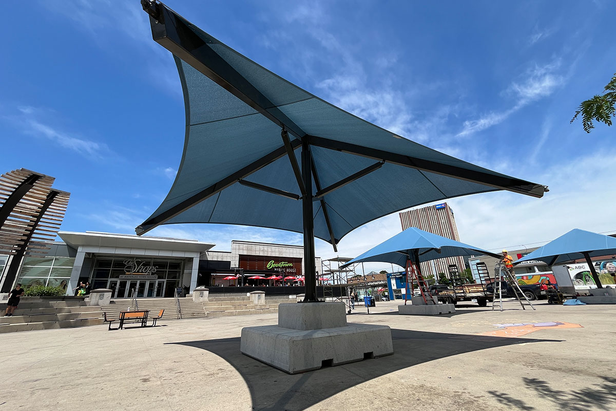 Discover Sun Shade Co.’s new Concrete Base Mounting System. A portable, non-permanent solution for HiLo Single Post Shades and Umbrellas. Perfect for patios, pop-up parks, and temporary spaces.